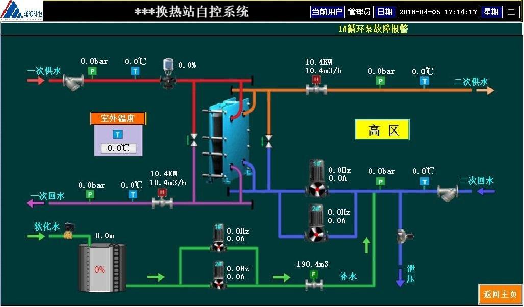 換熱機組是集中了板式換熱器、循環水泵、補水泵、電控系統、除污器、閥門、儀表、傳感器等設備于一體的換熱設備。所有設備整合固定于機組底盤上,整體設計使換熱機組可以方便的布置,大大減少了占地面積。換熱機組在換熱器一次側設有電動調節閥,該調節閥可根據機組二次側出口溫度和室外溫度的變化調整開度,控制一次側的流量,進而調節二次側的出水溫度。換熱機組是按模塊化設計的,其全部的生產、組裝和調試均在生產車間內完成,進入安裝現場后只需連接一、二次側的進、出水口和補水進口即可。
