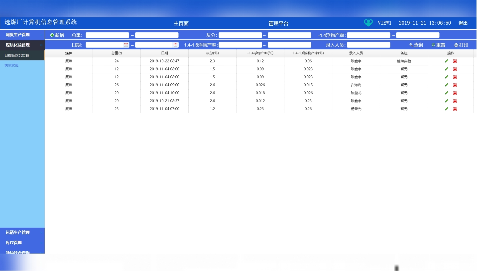 煤質(zhì)管理:煤質(zhì)化驗管理實現(xiàn)對數(shù)據(jù)的對標、同比、環(huán)比等分析,進行指標生產(chǎn)、生產(chǎn)效果評定,并形成圖表。對形成的圖表,還可進行增、刪、改、查等操作。